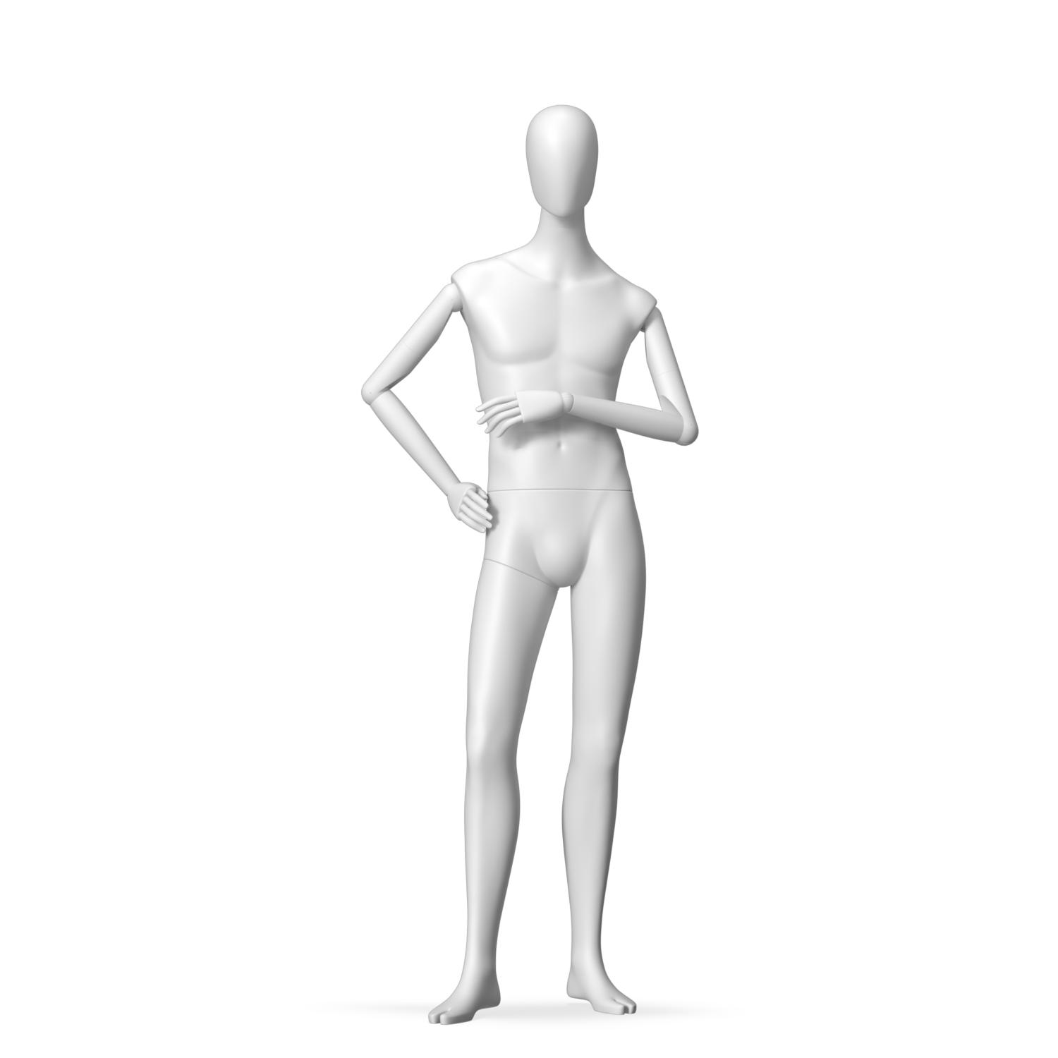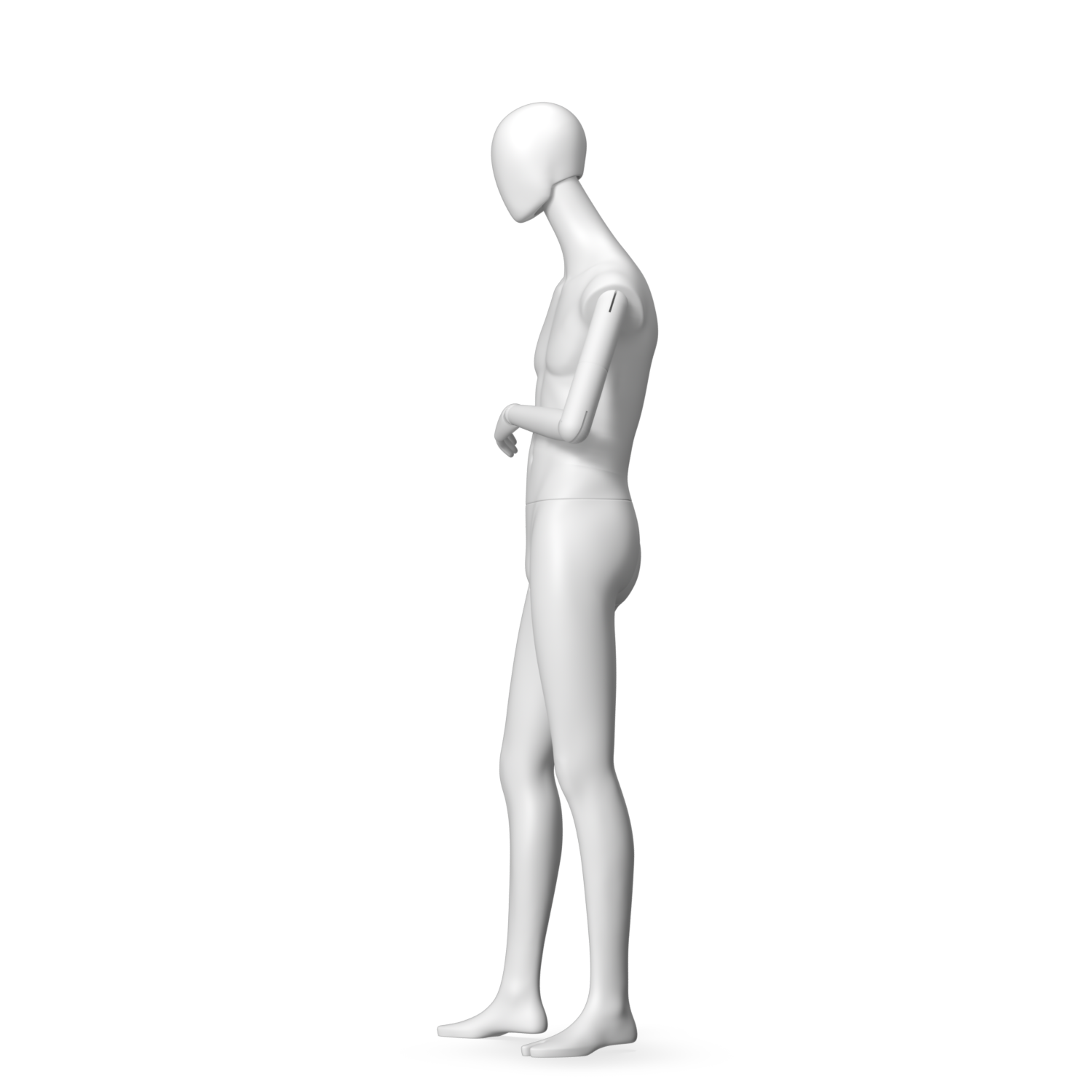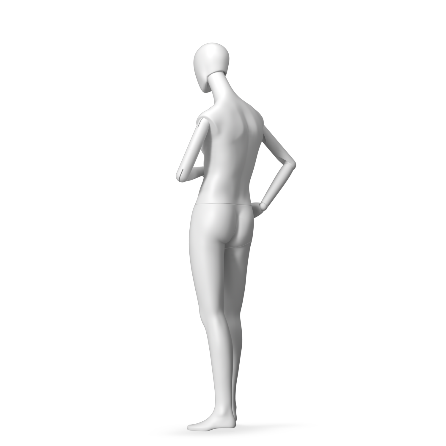 The Male Radiant Articulated is finished in C8 white matte paint, with C8 white matte, wooden articulated arms. He has a detachable 360˚ Egg Head with a NO-GAP design. Different head options can be ordered seperately. A 42cm Round Glass Base with a Silver Chrome Upright & Calf Pin is included.